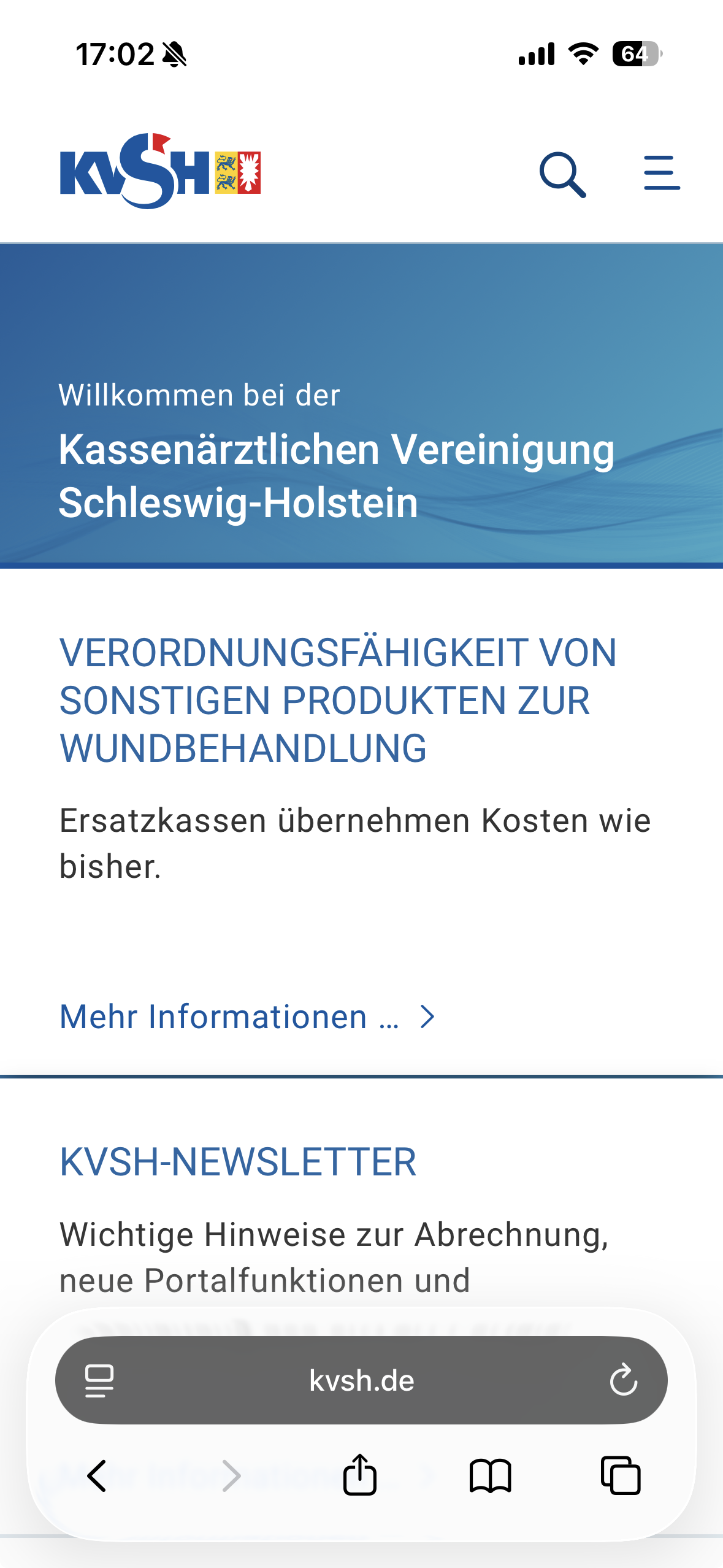 Front-End for Kassenärtzliche Vereinigung von Schelswig Holzetein.